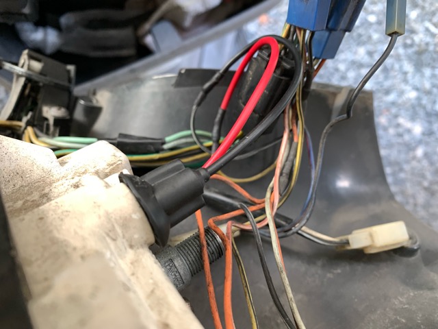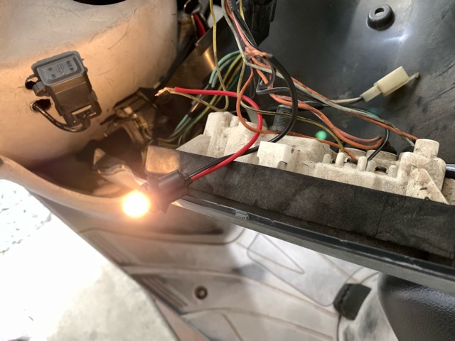 コネクターからの配線なので途中でぶった切り、以前ヘッドライトにポジション球を
