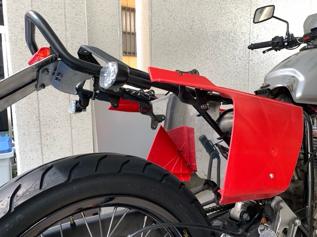 ②車載工具BOXがサイドカバー後ろに丸見えでかっちょ良くないので位置を移動か?